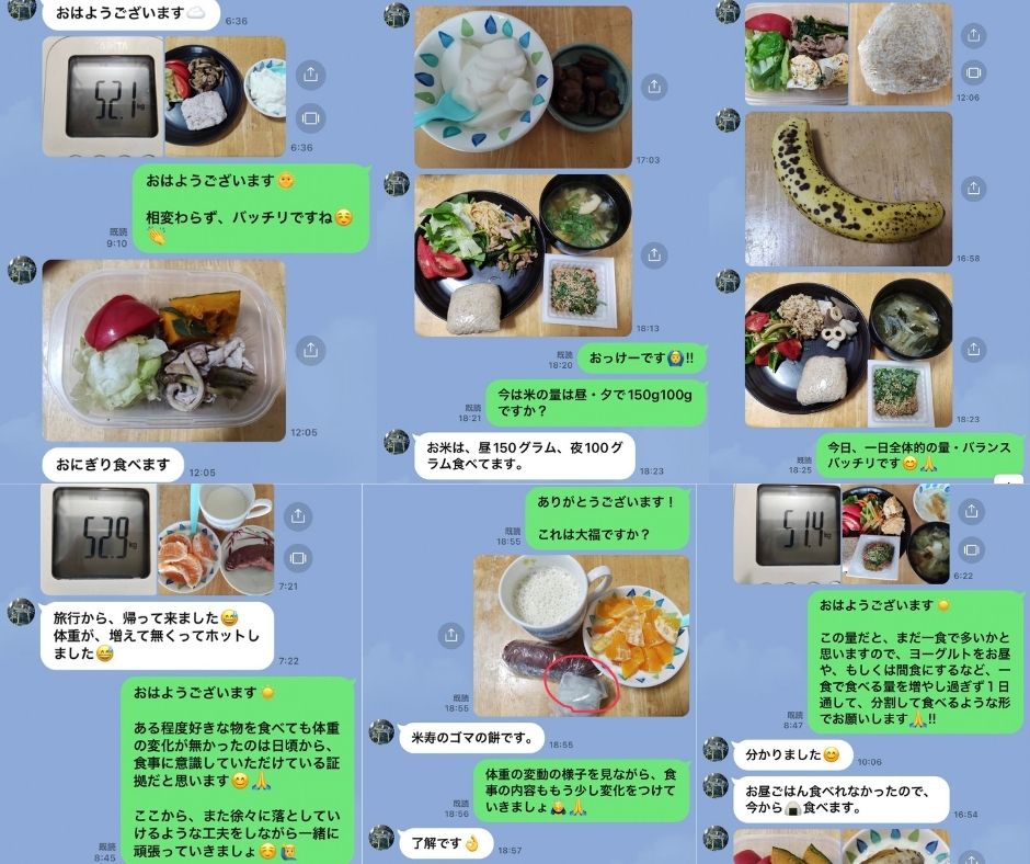 食事とトレーニングはセットであるべきだと思っています。ですので、僕はパーソナルをカスタマイズコースご契約いただいた方全員にLINEによる食事指導サポートをお付けしています。